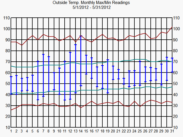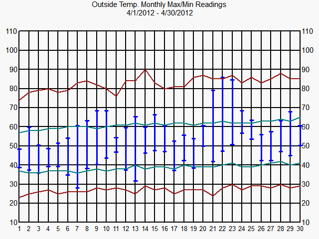 Hood River Historical Rain and Temperature Graphs 2012